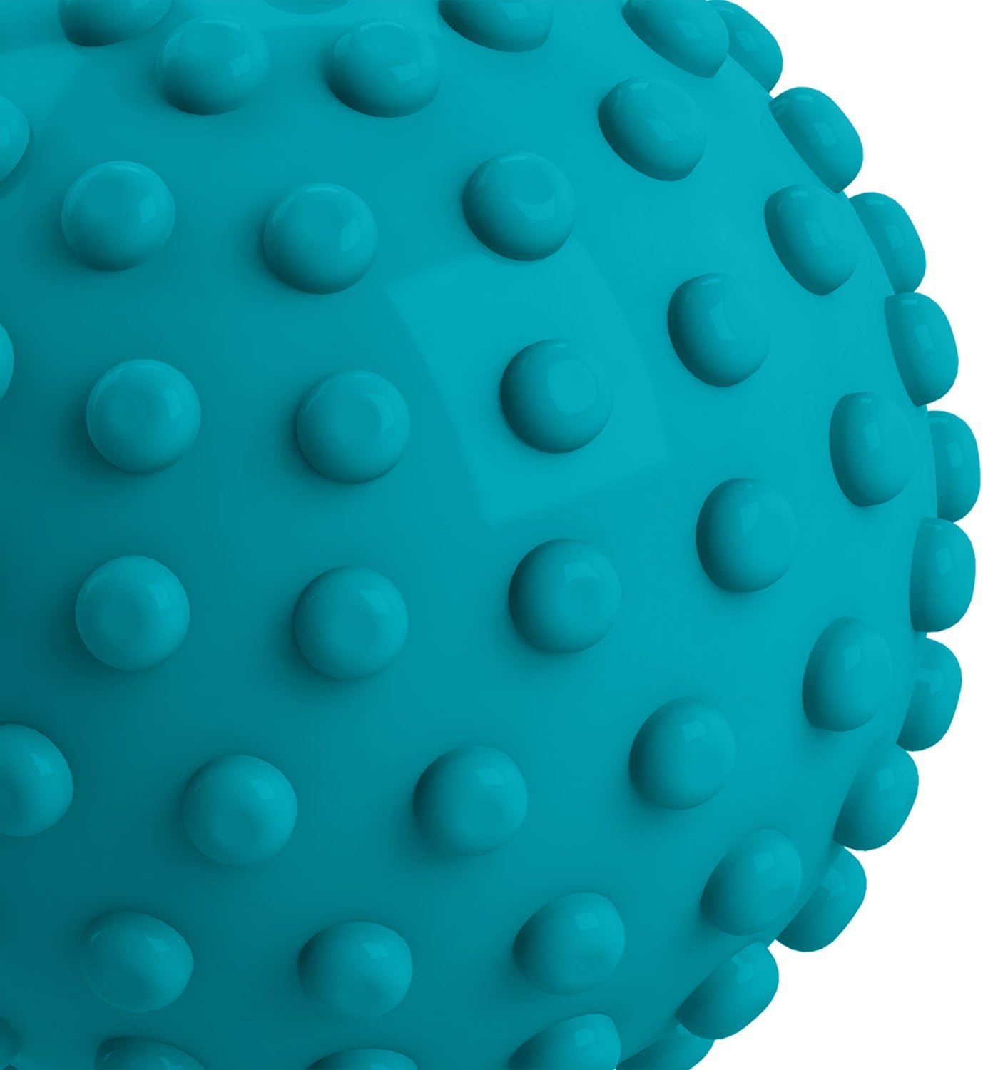 I find this gentle enough to use for Plantars Fasciitis. I saw spiky balls advertised on amazon but I dont understand why people would risk tearing the fascia even more with such products. I also saw smooth balls but they didnt seem like they would break up that crunchy feeling of scar tissue build up that often occurs with pf. i love the perfect size of this ball. it is not expensive, seems non-toxic, is super easy to use and roll your foot on when you are seated -doesnt easily run away from you. It is super strong but has the nodules on it that shouldnt cause tears or be too aggrivating on existing tears while being able to work on the knots and scar tissue. I can feel the crunchy areas when i rub my foot over it applying very little pressure but just enough to break up the crunchies. It feels really good to rub my foot on it. I had severe pain walking all day long and after one day it using the ball and massaging my calf, it started to subside and within 2-3 days pain was gone. you can also stretch your toes and do calf stretches with this and rub your heel and sides of foot -your whole underside of your foot. i also used it against the door to break up knots in my shoulder that was super painful. Its good for hands, neck, too. easy to clean. Just great for trigger points and pf pain relief and keeping feet healthy to help prevent recurrence of pf and other trigger point pain. Love this small ball.Lastly, I wanted to say… dont stand on this or any other ball…. it doesnt seem like a good idea if you have pf as it might increase tears in the fascia why would anyone recommend that… but people do it.