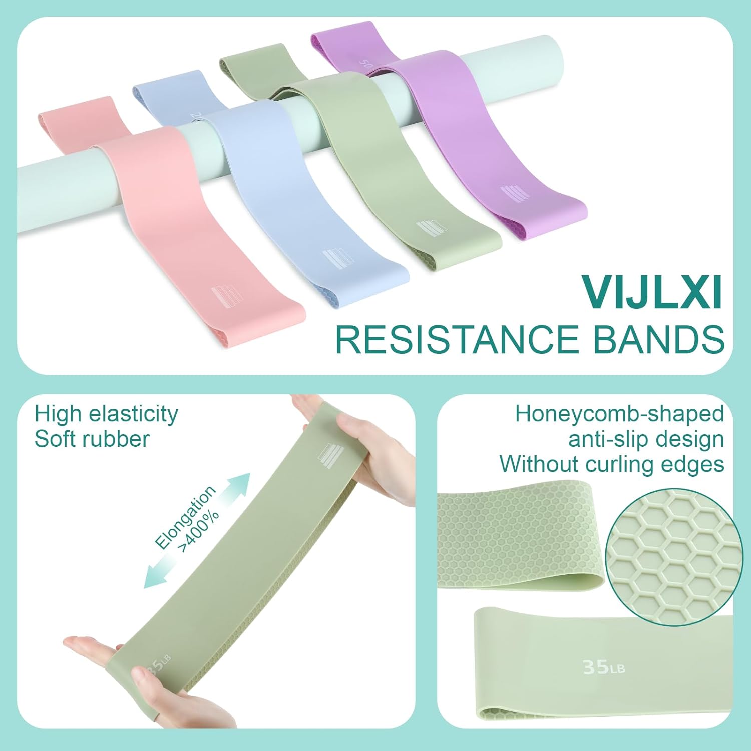 4 Resistance Bands: Upgraded with skin-friendly latex material and rear honeycomb anti-slip design, these bands deliver instant elastic feedback upon use. Featuring 4 resistance levels (15lbs-50lbs), they cater to users of all strength levels. Ideal for targeted thigh and glute training, the progressive resistance system allows you to gradually intensify your workouts.