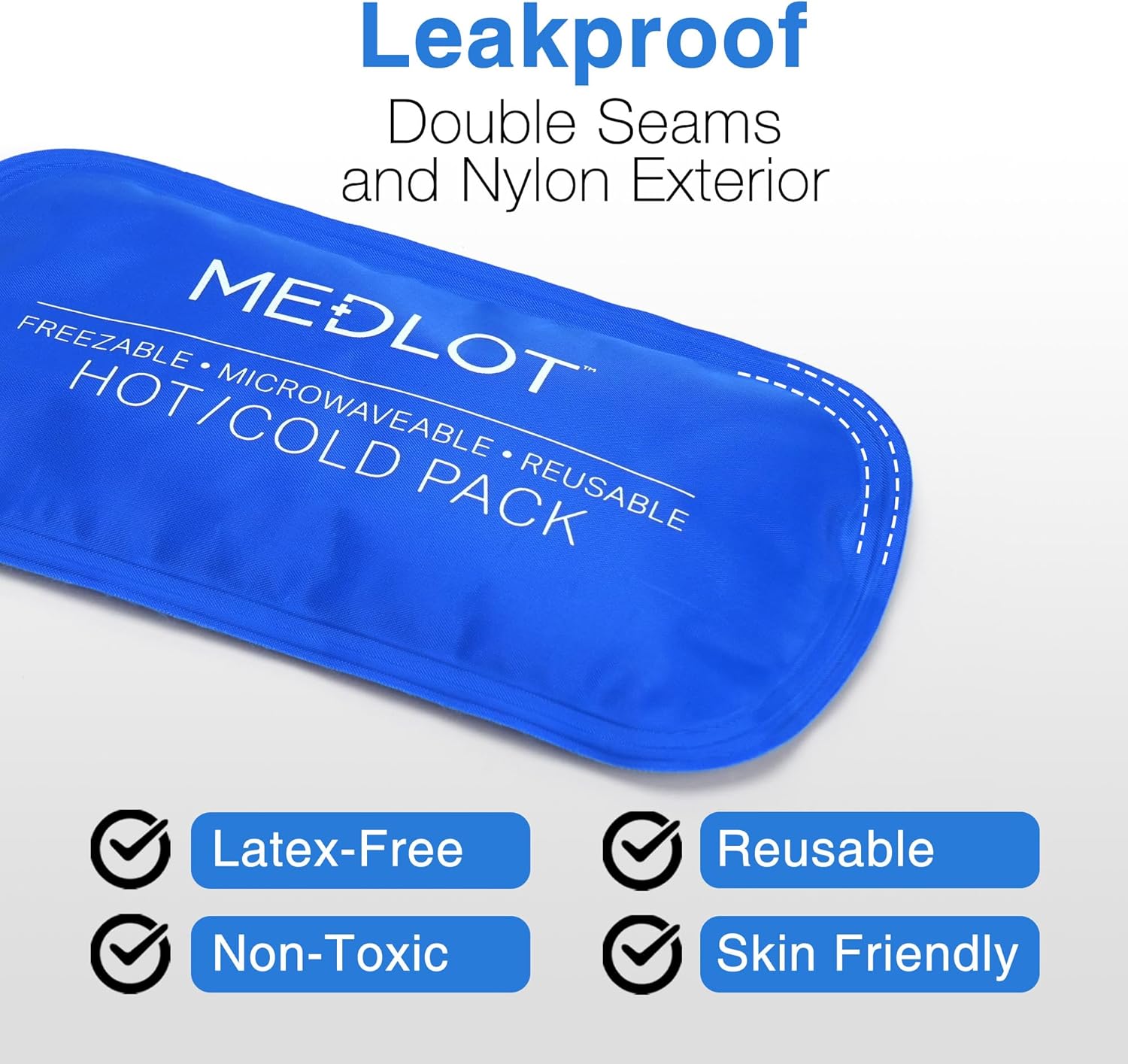 HOT COLD THERAPY: This small gel pack is both Microwave AND Freezer safe, allowing you to use hot or cold therapy depending on your needs; Ice packs will stay cold or hot for the recommended 15-20 minutes of treatment; NOTE: Packaging has been updated, MEDLOT brand will be sent