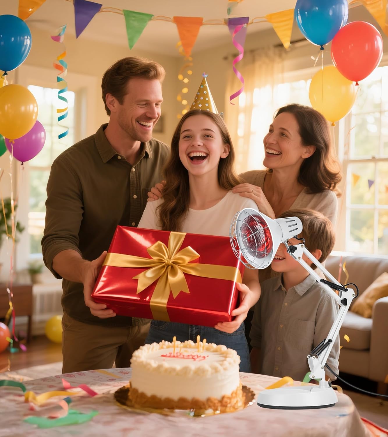 Adjustable Angle: The neck of the near-infrared bulb can be adjusted 360° to set the infrared light therapy lamp in the right direction; Heavy-duty base makes the infrared heat lamp more sturdy to avoid falling and smashing people.