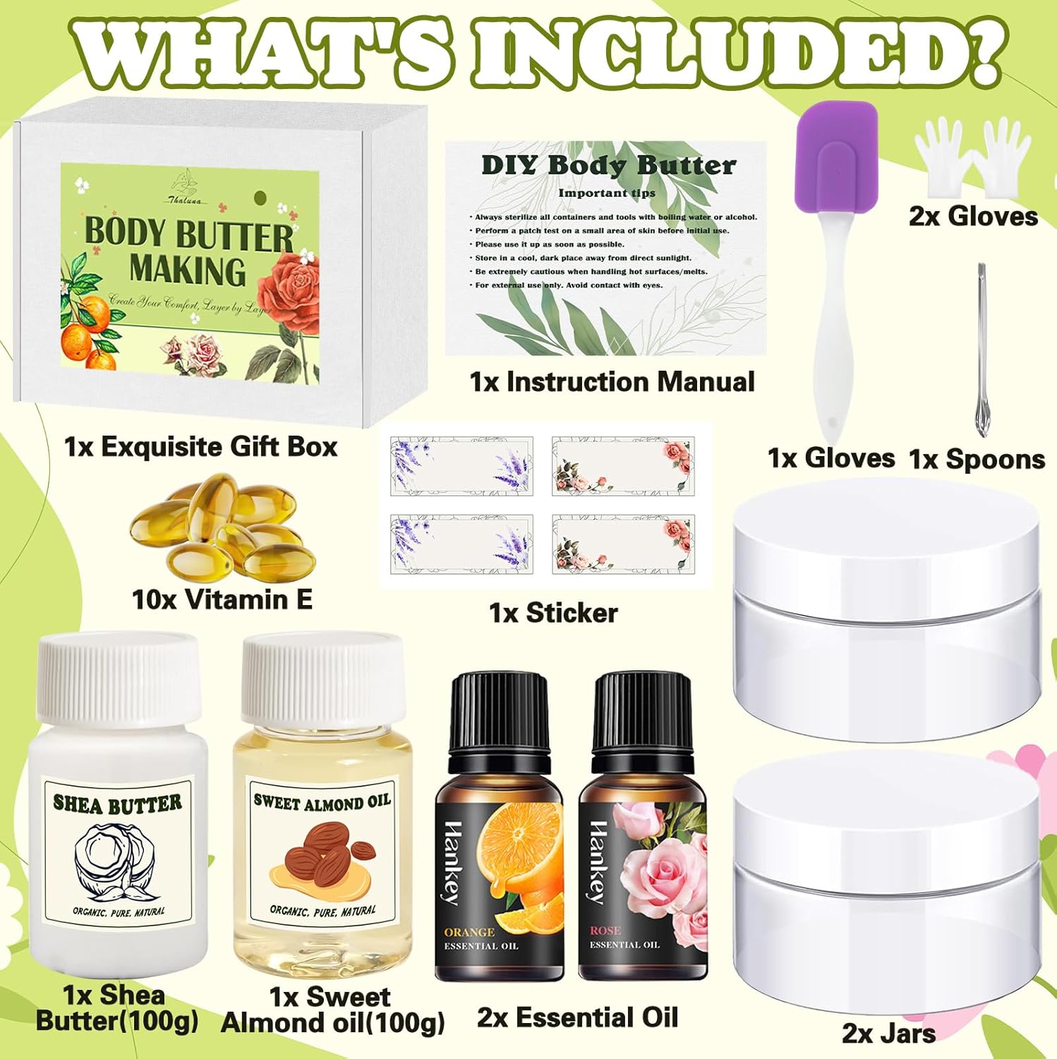 2 reviews for Thaluna Whipped Body Butter Making Kit for Dry Skin, DIY Solid Shea Butter Body Lotion Making Kit with Sweet Almond Oil, Vitamin E, Essential Oil – Moisturizing for Body Christmas Gifts for Women